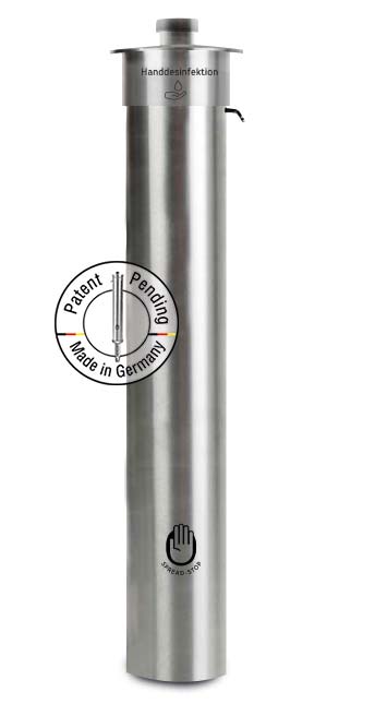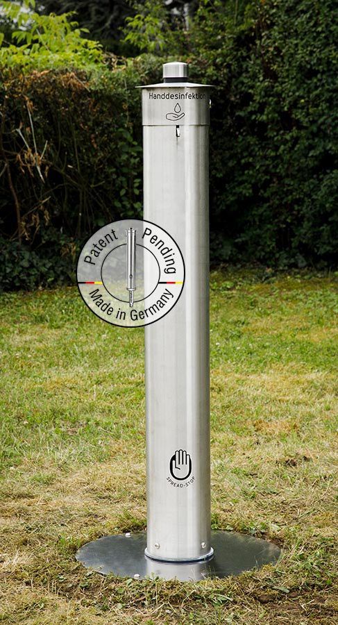 Spread-Stop VARIO, DEPOT et MOBIL: Distributeurs de désinfection potelet / distributeurs de désinfection des mains pour marchés, événements, restaurants, écoles / universités, événements sportifs, stades de football, concerts, bureaux, entreprises, supermarchés et magasins de bricolage, aires de jeux, centres commerciaux, festivals, hôtels, arrêts de bus, magasins, boulangeries et bien plus encore…
