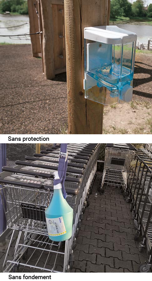 l’extérieur, où le manque de disponibilité d’eau ne permet pas de se laver les mains, la possibilité de se les désinfecter a une grande importance.